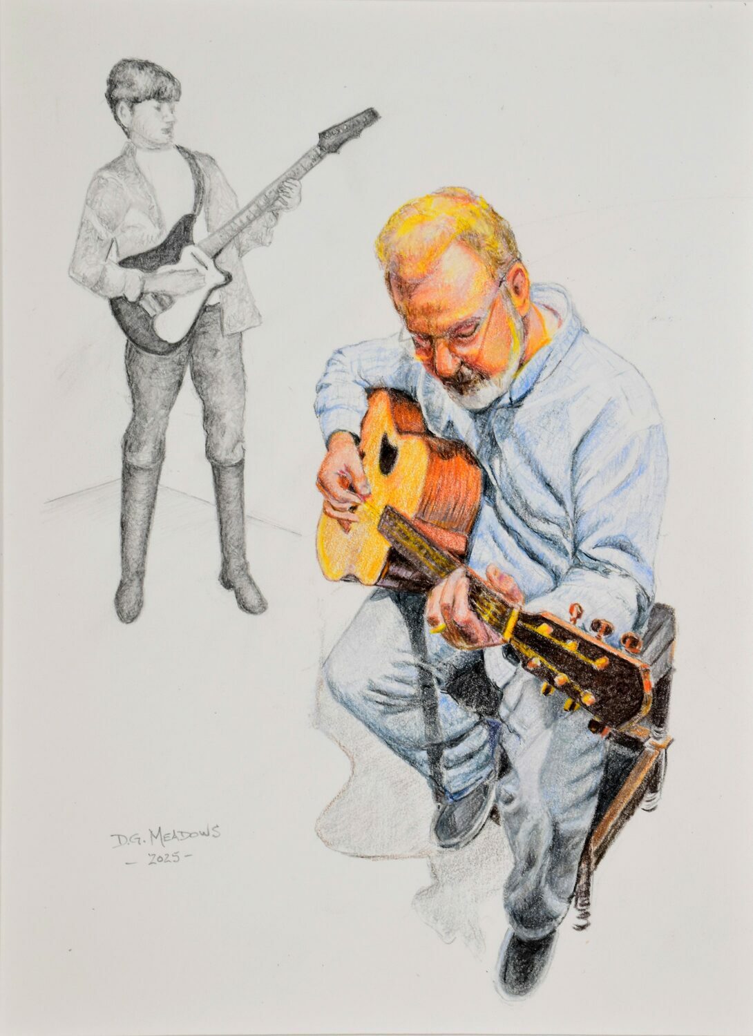 Guitar Man, Then and Now (Colored Pencil) by Don Meadows