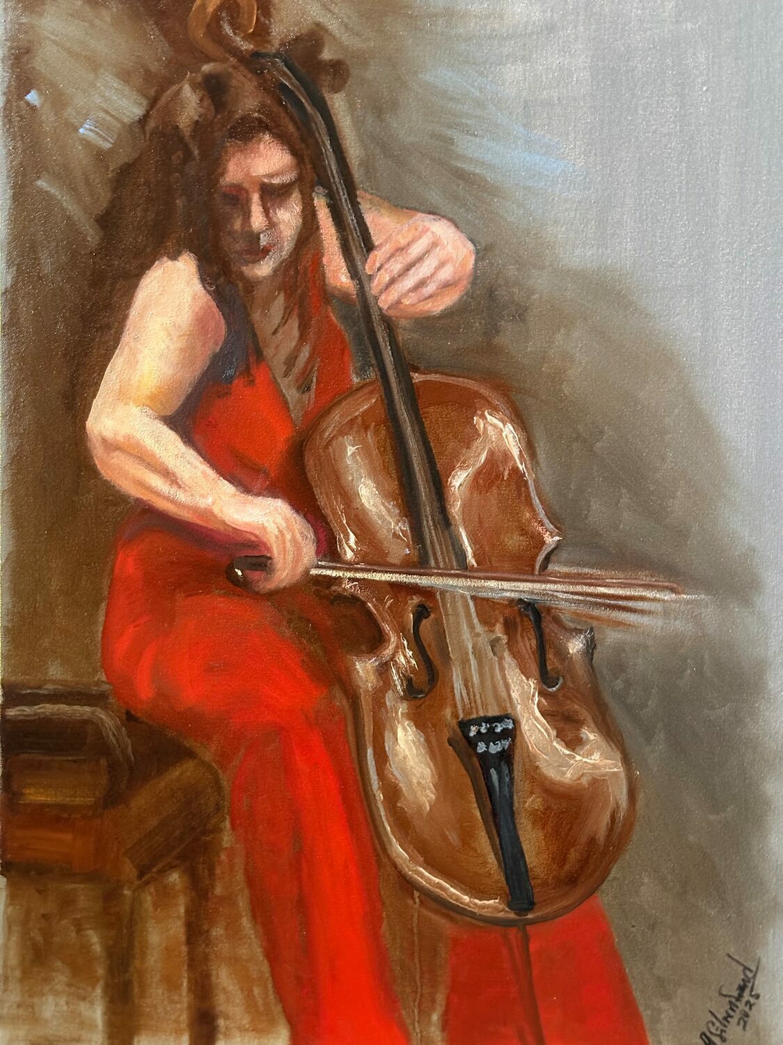 Cellist at ASO (Oil) by Gerald Silverboard