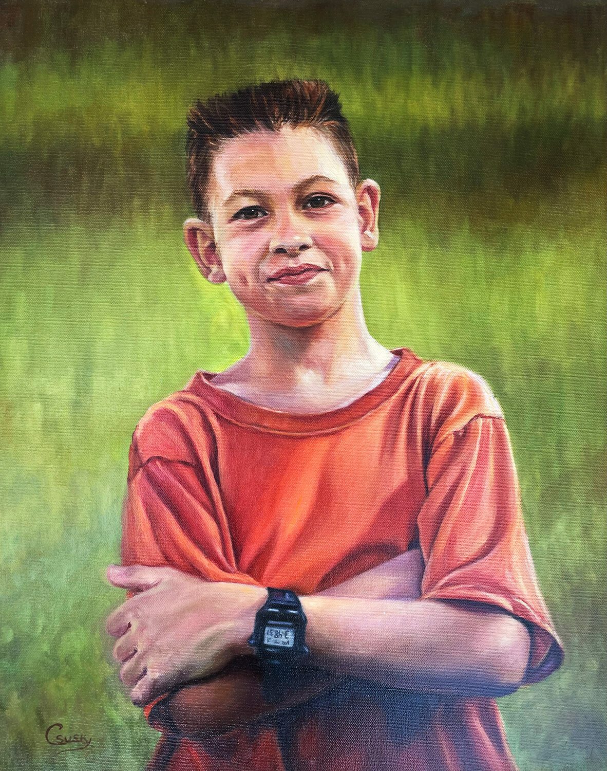 Andrew and his Watch (Oil) by Catherine Susky