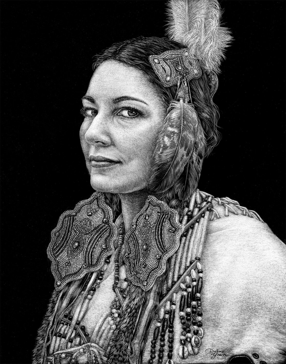 Proud of Her Heritage (Scratchboard) by Debra Kauffman Yaun
